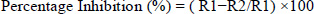 - R1 = radial growth of the pathogen in the control plate (mm)