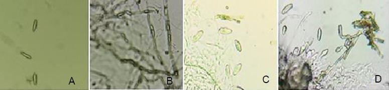 Microscopic pictures of the isolates. Pictures A, B, C and D belong to isolates 5, 19, 32, and 65, respectively. The images are not presented to scale.