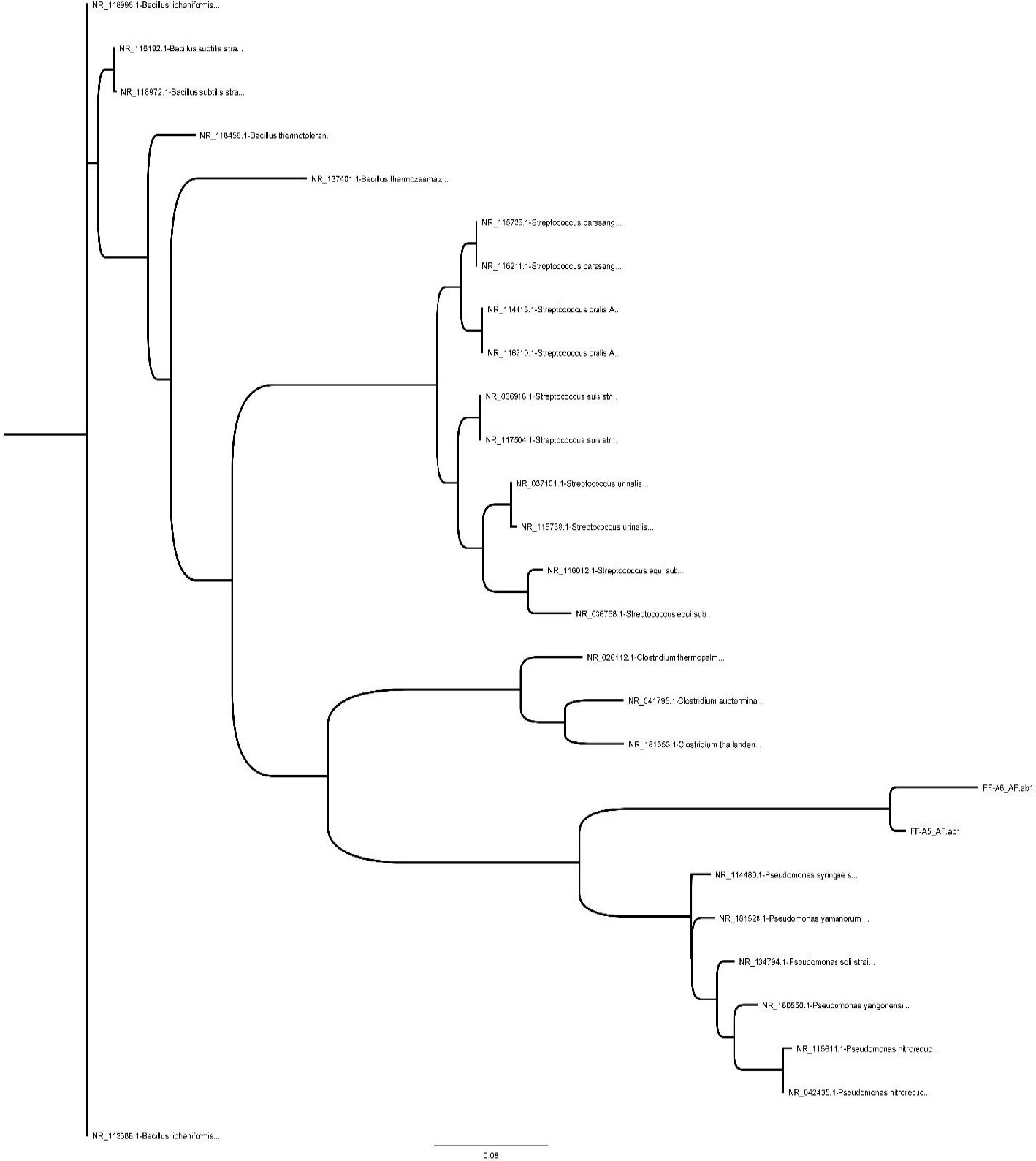 Our phylogenetic investigation discovered two new bacterial strains, FF-A5 and FF-A6, which were very important to the biodegradation process in the batch bioreactor. It was observed that strain FF-A6 was more metabolically active at breaking down aromatic and aliphatic hydrocarbons over time, and they were extremely effective at breaking down pollutants. A “best” strain cannot be identified until further genomic, enzymatic, or functional tests are performed on the two strains, as they have not been fully described yet. Studying these strains in pure cultures can assist future studies in figuring out how well they break down pollutants and if they have a synergistic effect.