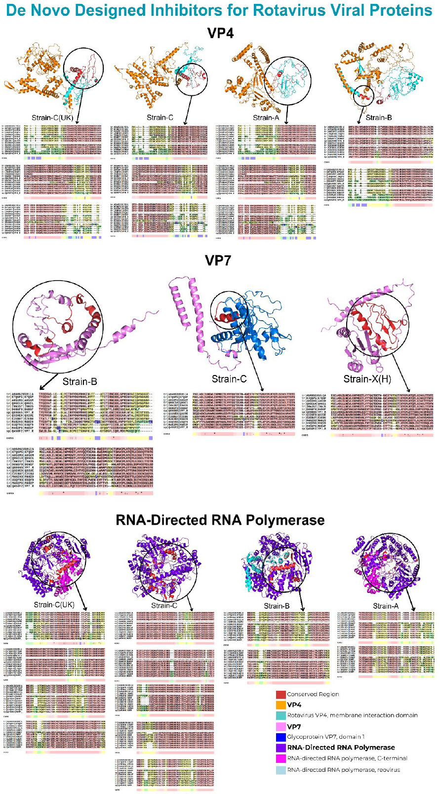 De-Novo Protein Design Strategies for Targeting Rotavirus Proteins: Evolutionary Conservation and Therapeutic Implications